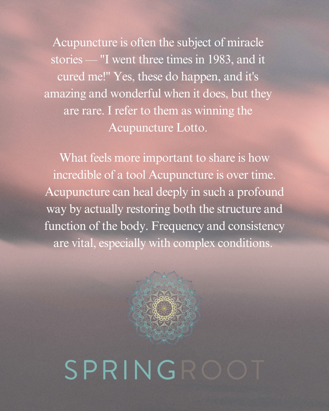 With over 20 years experience in Chinese Medicine and body therapies, SpringRoot Acupuncture of Woodbury, CT specializes in acupuncture and integrative medicine for individuals wanting to improve their overall health, for those experiencing acute or chronic pain, neuropathy inflammation-related symptoms, and for individuals seeking support on their trying-to-conceive journey. Utilizing proven techniques and a personalized approach, we support each of our patients in achieving a balanced, pain-free, active life or on their path to parenthood.